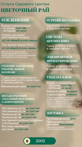 Полный комплекс услуг по проектированию, благоустройству и озеленению территорий. Многолетний опыт работы в ландшафтной отрасли позволяет нам специалистам уже реализовать проекты любых масштабов и степени сложности, учитывая особенности каждого из объектов.